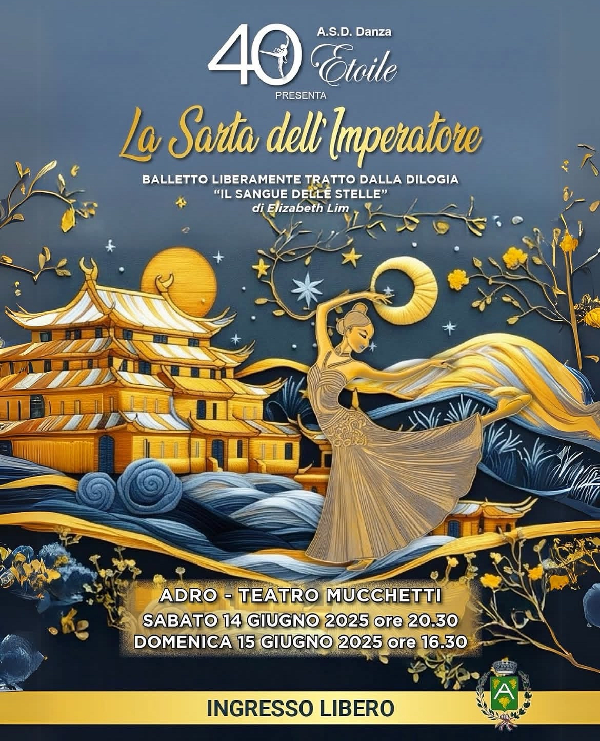 Gli allievi della A.S.D. DANZA ETOILE di Adro, in occasione del 40° anniversario della scuola, sono lieti di presentare il saggio di fine anno "LA SARTA DELL'IMPERATORE".